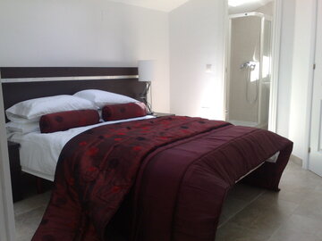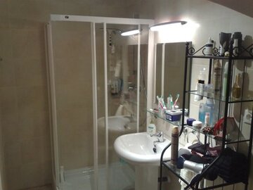 Twee slaapkamers met douche en toilet, schuifkasten voor linnengoed, kleding en koffers.