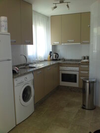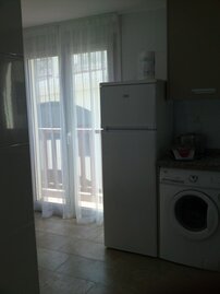 Keuken: met koelkast inclusief diepvriesvak, wasmachine, 4-pits electrische kookplaat met oven. Diverse kookbenodigdheden en bestek.